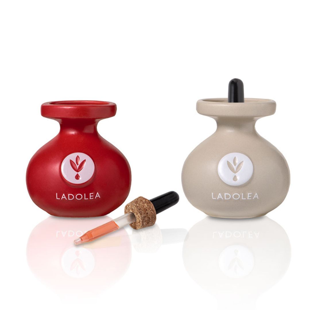 Ladolea olijfolie set in huis? Dan haal je een stukje Griekenland naar je keuken. Deze luxe giftset bevat twee handgemaakte keramische potten met extra vierge olijfolie, elk verrijkt met een natuurlijke smaakmaker.