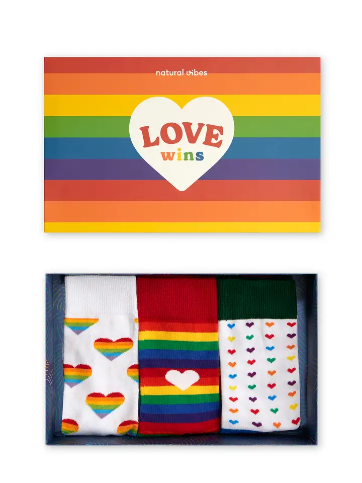 Spread love. Een vrolijk en kleurrijk liefdessokken cadeau – biologisch, bewust én prachtig verpakt.