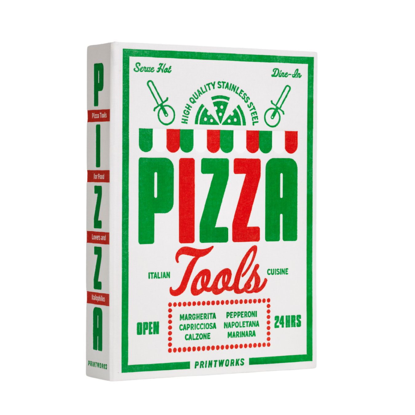 De luxe doos in boekvorm is net zo elegant als verrassend. Het is een cadeau dat indruk maakt zodra je het overhandigt. Binnenin ontdekken ze de twee onmisbare hulpmiddelen voor geslaagde pizzamomenten: