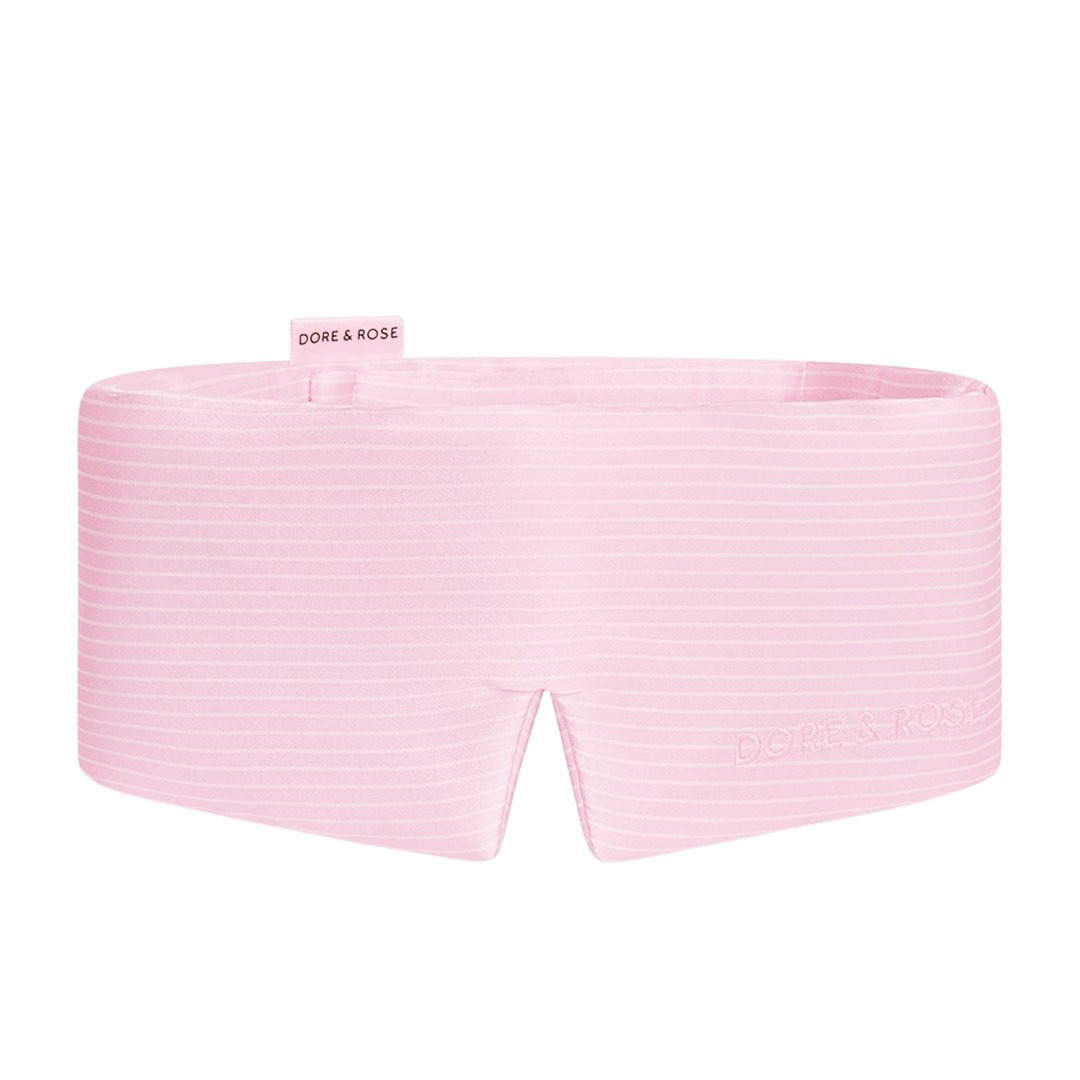 Het roze gestreept slaapmasker van Dore & Rose combineert zachtheid, comfort en een frisse, vrolijke uitstraling. Het is gemaakt van 100% moerbeizijde. Daardoor voelt het koel, soepel en zacht aan op de huid. Je komt sneller tot rust en wordt merkbaar frisser wakker.